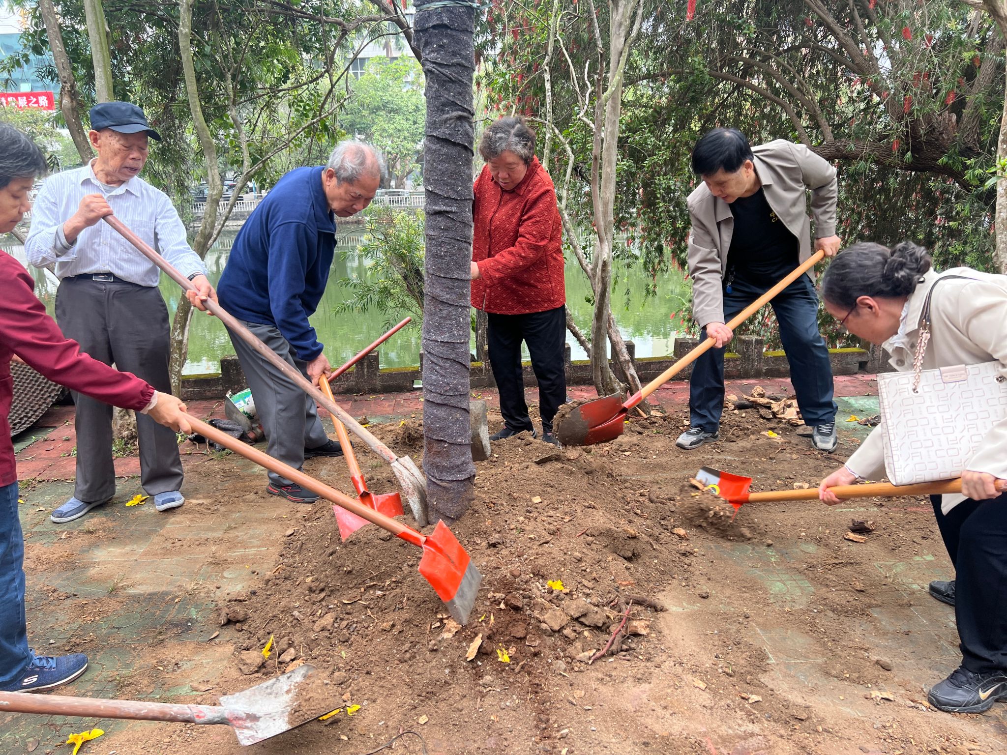 活动现场气氛热烈,离退休老同志与青年学子并肩劳动,分享育人故事与环保理念。一位参与活动的老教师感慨道:"在校园里种下树苗,既是寄托对学校发展的祝福,也是为下一代学子留下绿荫与希望。"